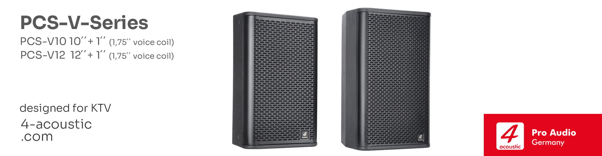The PCS-V loudspeaker series is the perfect choice for the Asian KTV market! The PCS-V series loudspeakers consist of two models: PCS-110V and PCS-112V. They utilize a totally newly designed 100° x 40° KTV horn with optimized despertion angle, equipped with rich, clear sound out to 20 KHz, reproducing neodymium driver. The woofers maintain newly designed die-cast chassis and newly formulated paper cone. The specially formulated cone pulp allows this driver to give a warm and smooth response throughout the bass frequency range, which is fantastic! The PCS-V Series is the ideal karaoke loudspeaker system to provide transparent and natural treble, warm and smooth mid-frequency, and powerful bass for clear and elastic drum sounds. The M8 suspension points and 35 mm pole socket offer a wide range of installation and hanging possibilities in both vertical and horizontal orientations, giving you the freedom to choose the perfect setup for your space.