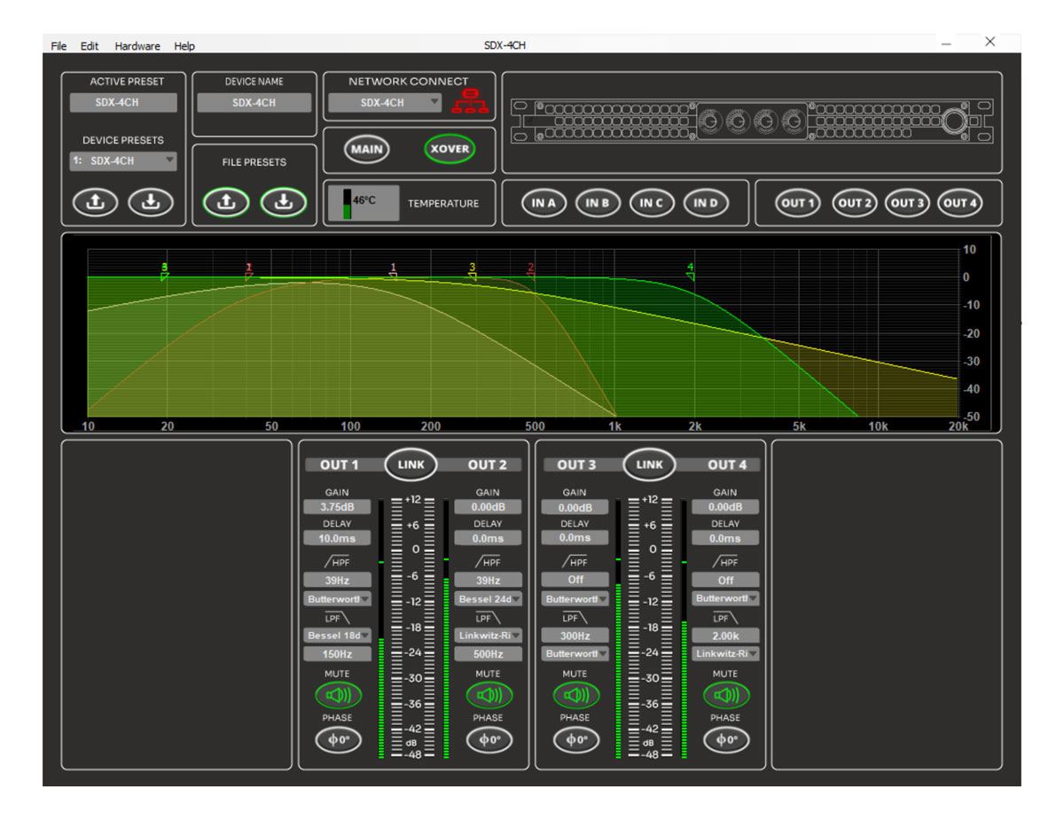 | Input/Output DSP Crossover Functions low and high-pass filter |