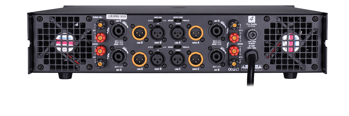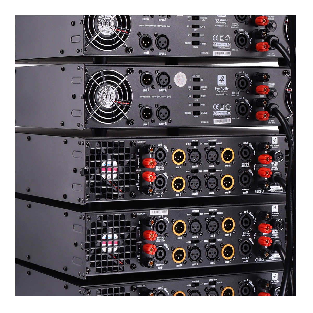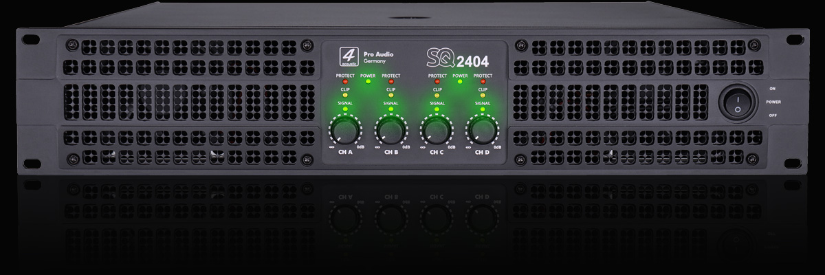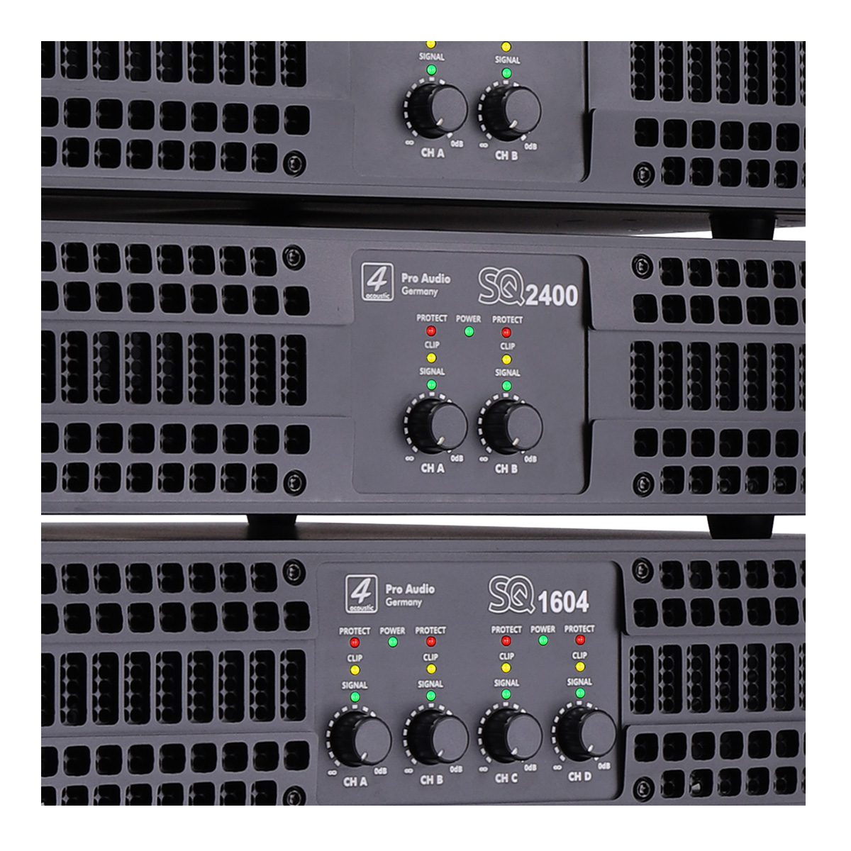 The SQ-series offers wide range of very , flexible amplifier performance From 2x900@4Ohm up to 4x1200@4Ohm different models are available for your choice The Class H output stage is powered by an oversized analog power supply with a strong toroidal transformer stable even under weak or unstable mains supplies. The front panel is equipped with a power switch and several to display the working status.
